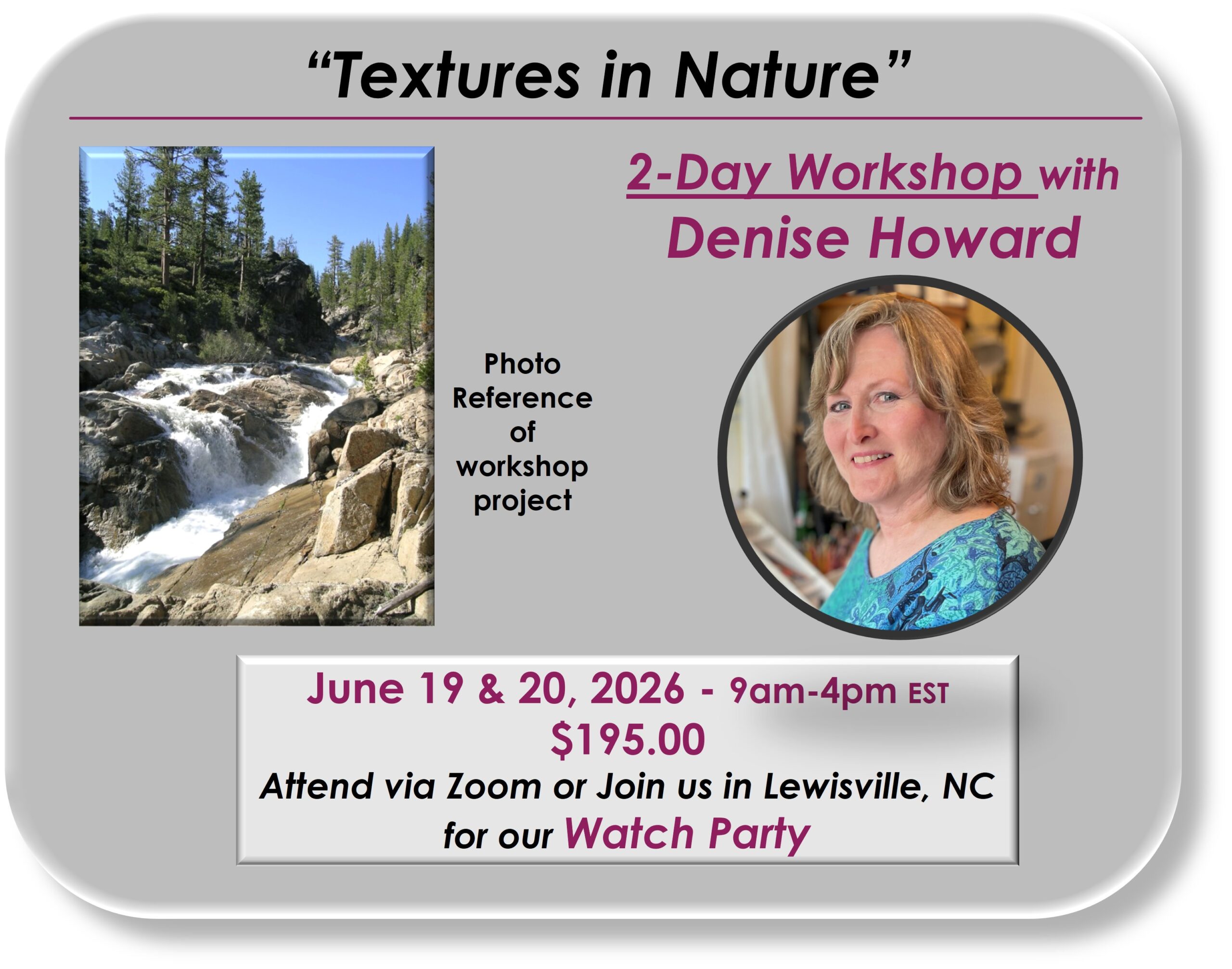 Nature is full of amazing textures—soft fur, crisp leaves, rippling grass, rugged bark, rocks—and drawing them can feel overwhelming. In this two-day workshop, Denise Howard will show you just how simple and enjoyable these textures can be once you learn her techniques that anyone can master.